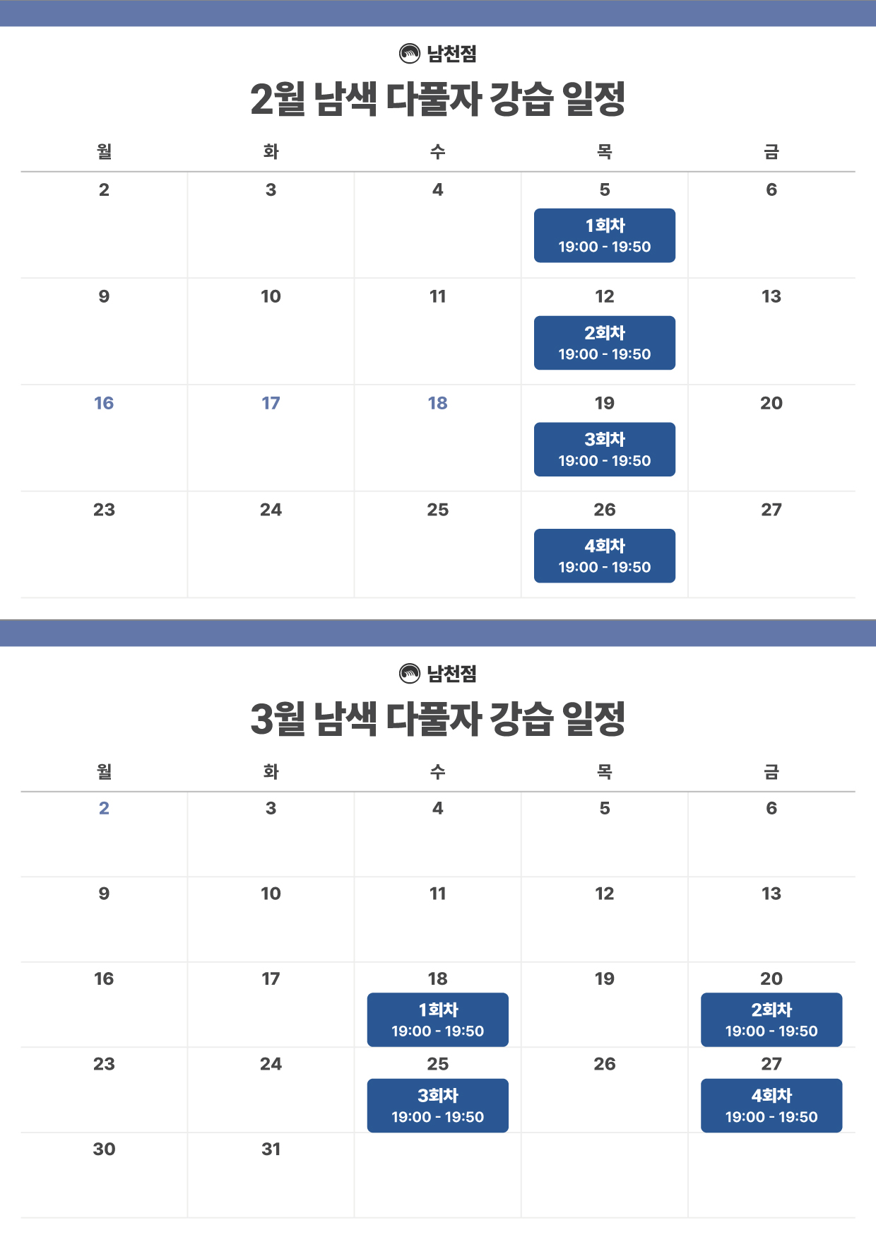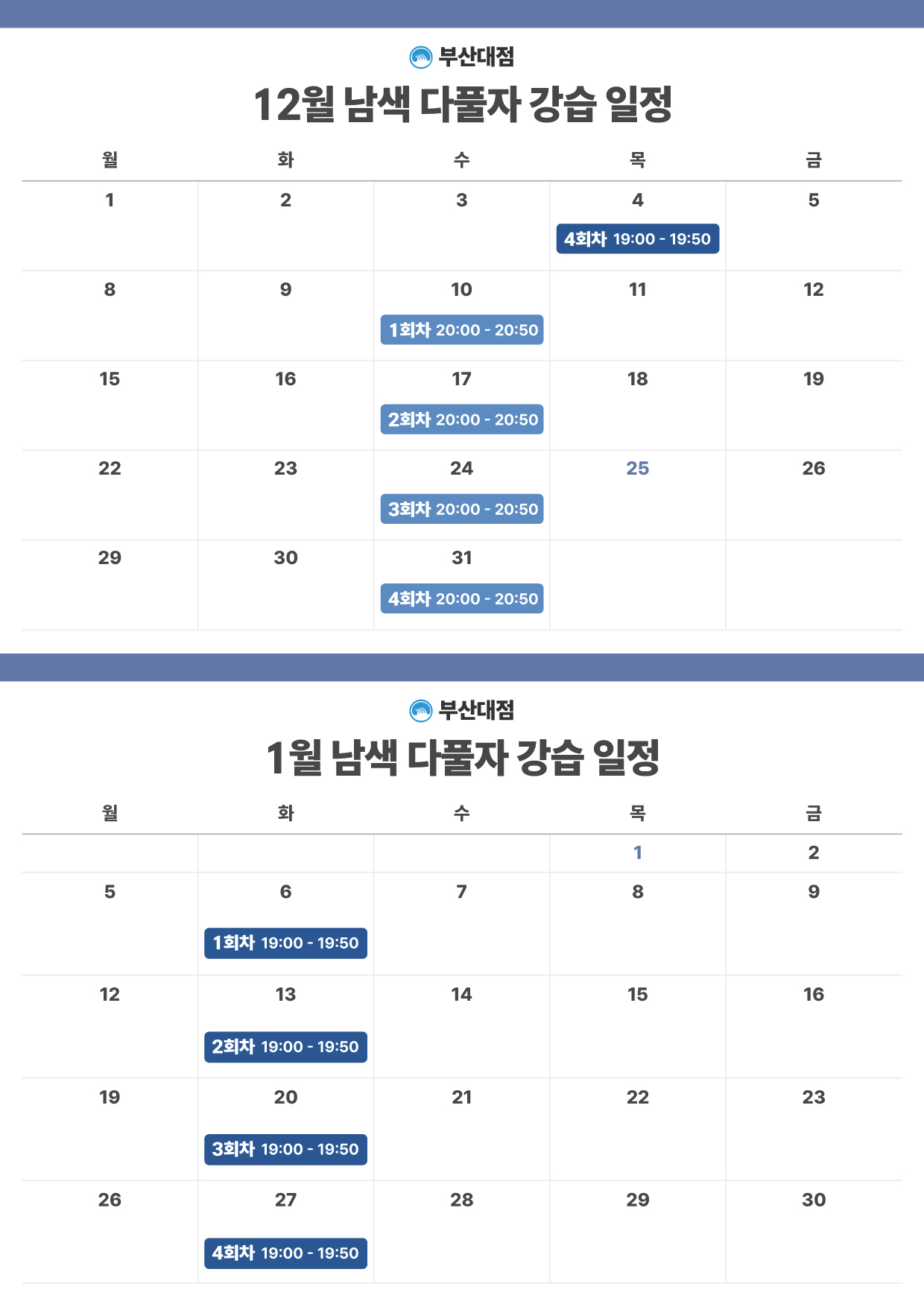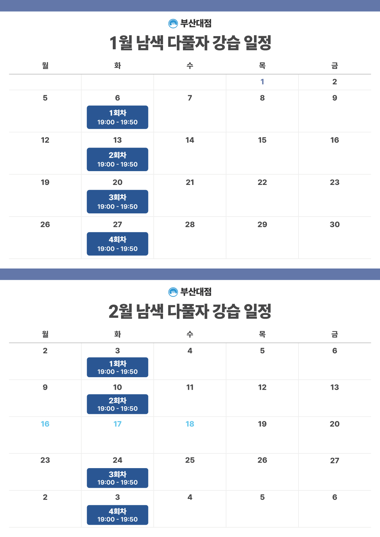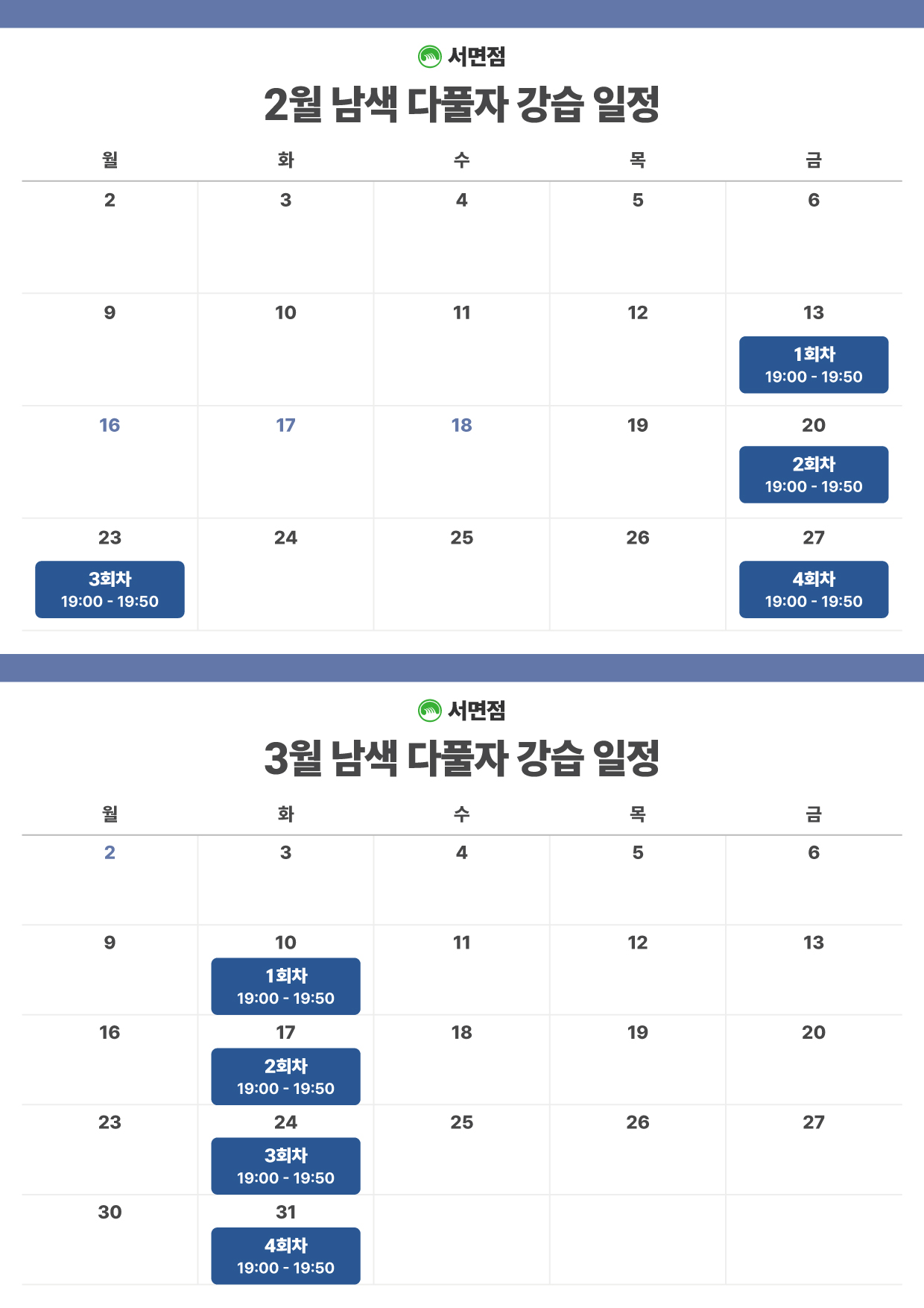 *부산대점 3월 강습 달력은 추후 업데이트 됩니다.