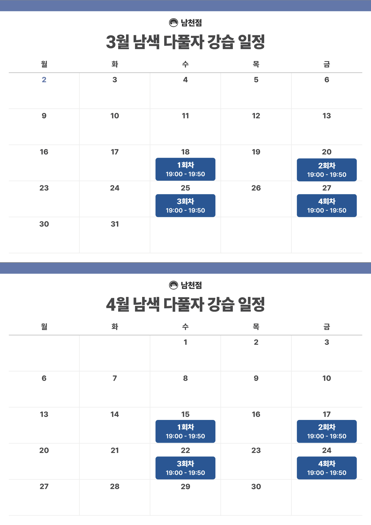 강습 시간 | 1시간 X 4회