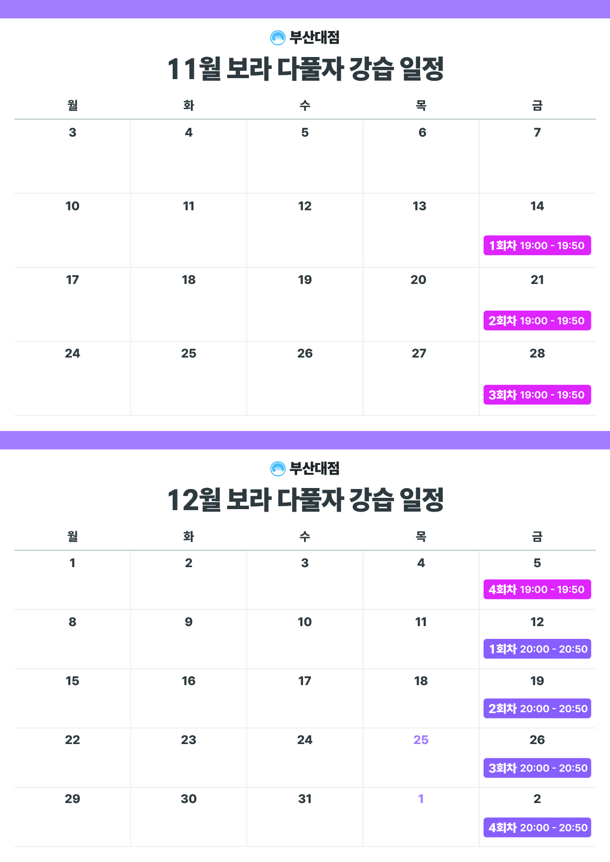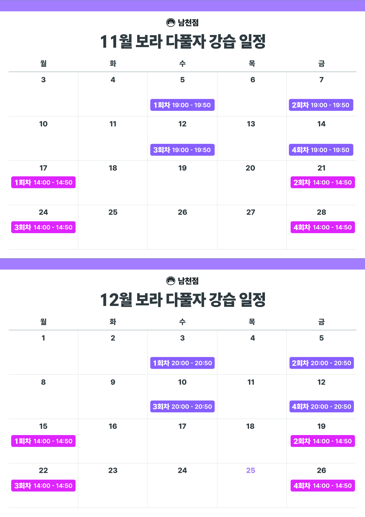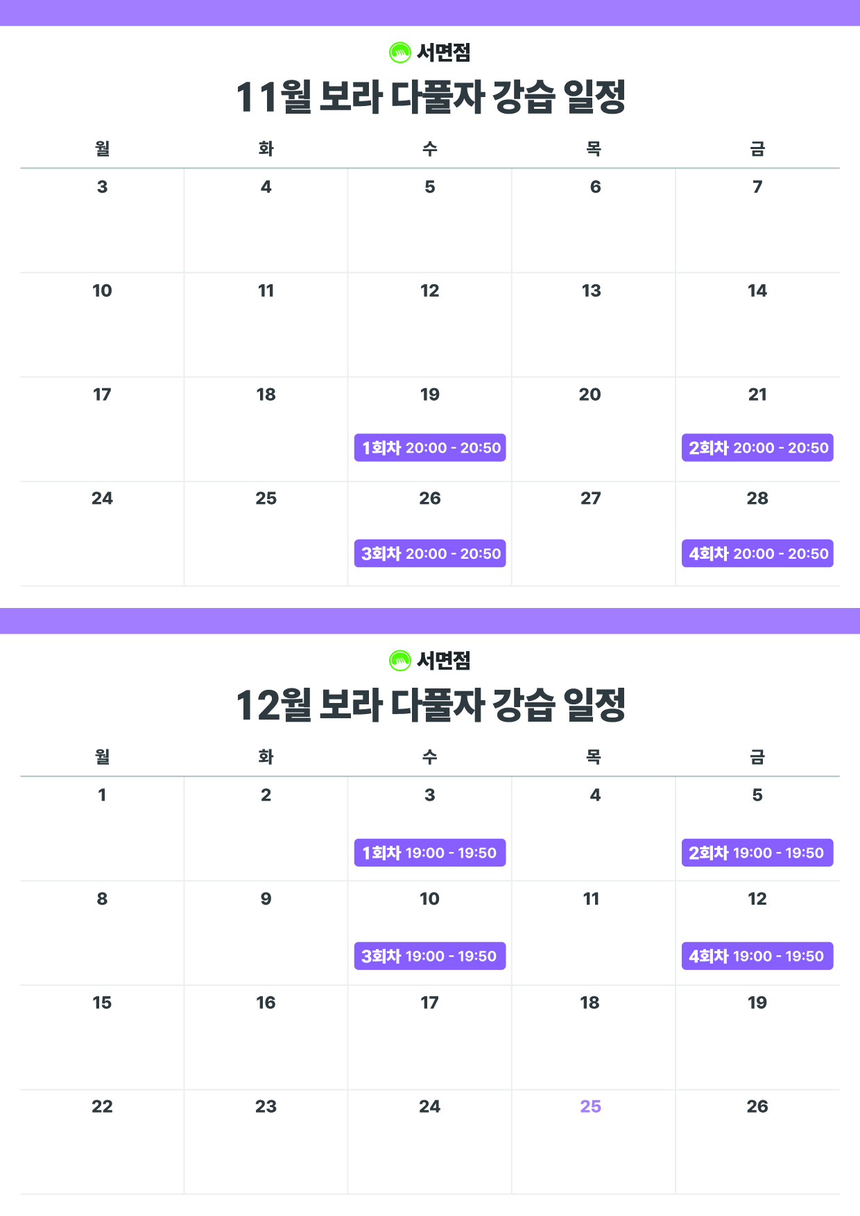 강습 시간 | 1시간 X 4회