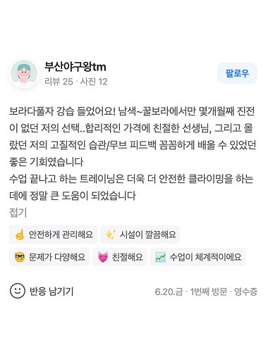 실제 고객님들의 강습 후기