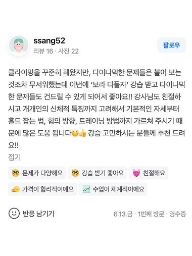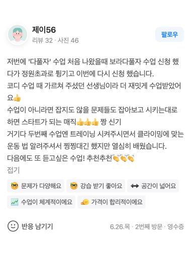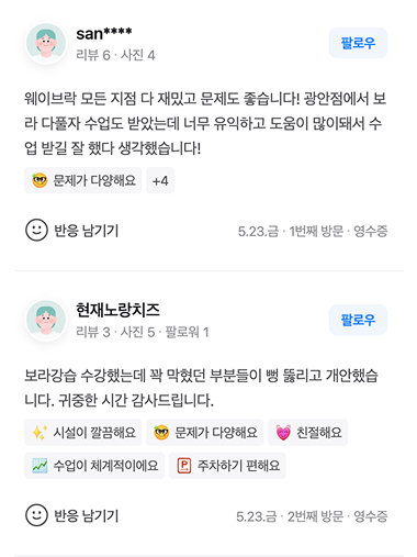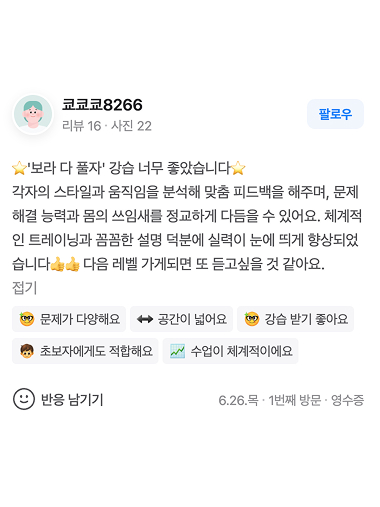 보라 다풀자 강습을 수강하신 회원님들의 실제 후기입니다.