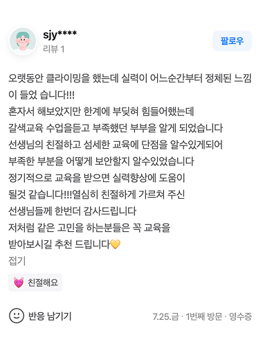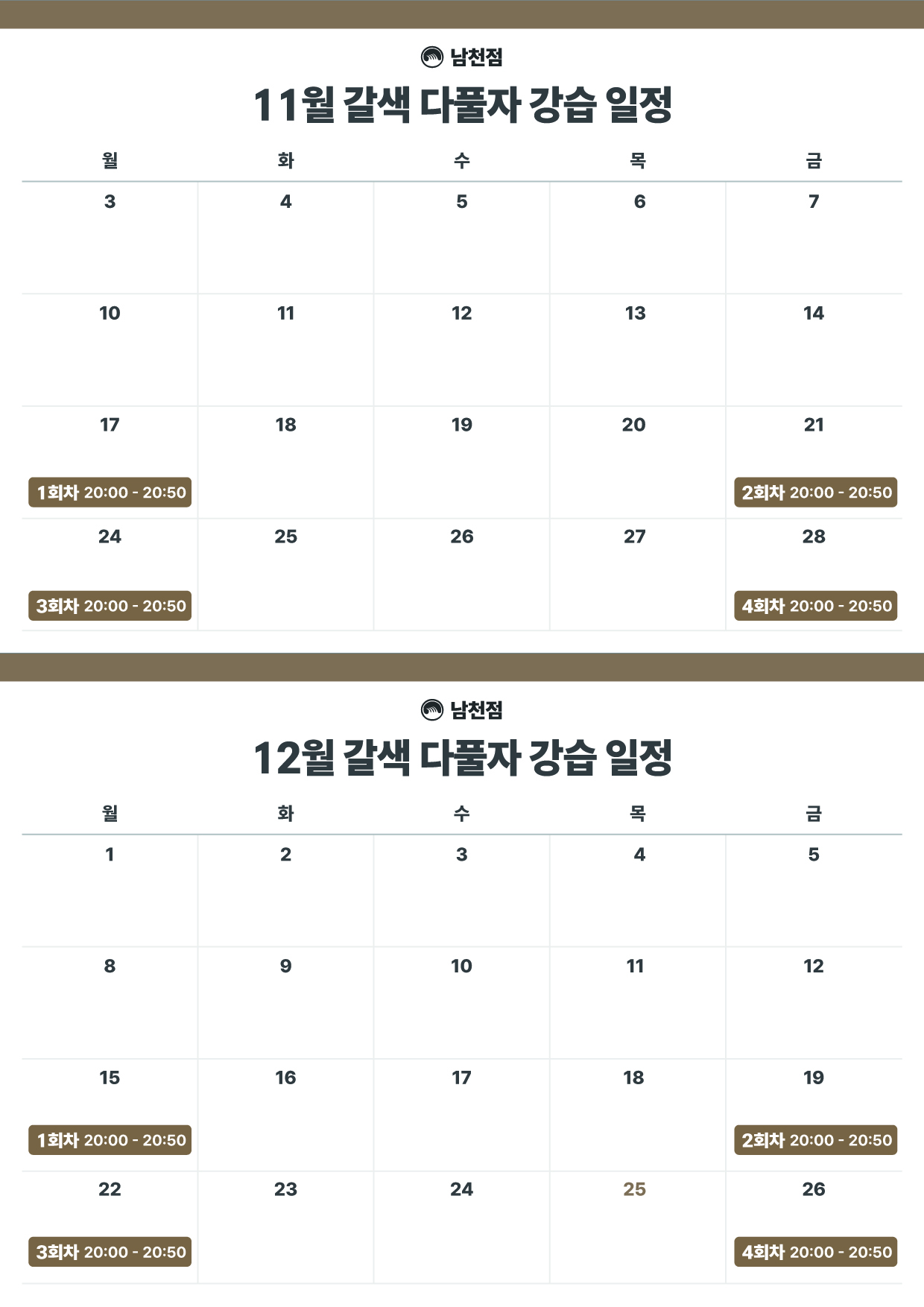 갈색 다풀자 강습을 수강하신 회원님들의 실제 후기입니다.